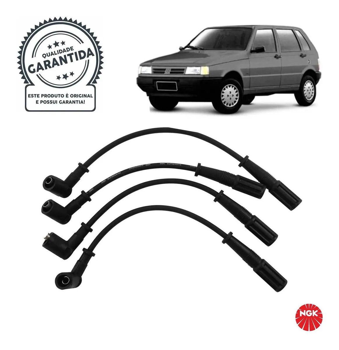 Cabos de silicone de 7mm com filamento de níquel-cromo com alta flexibilidade e alta capacidade de isolação evitando assim fuga de corrente com durabilidade superior. Os cabos NGK montados com supressores de ruído, possuem blindagem metálica permitindo maior dissipação térmica permitindo centelhas de melhor qualidade na vela.